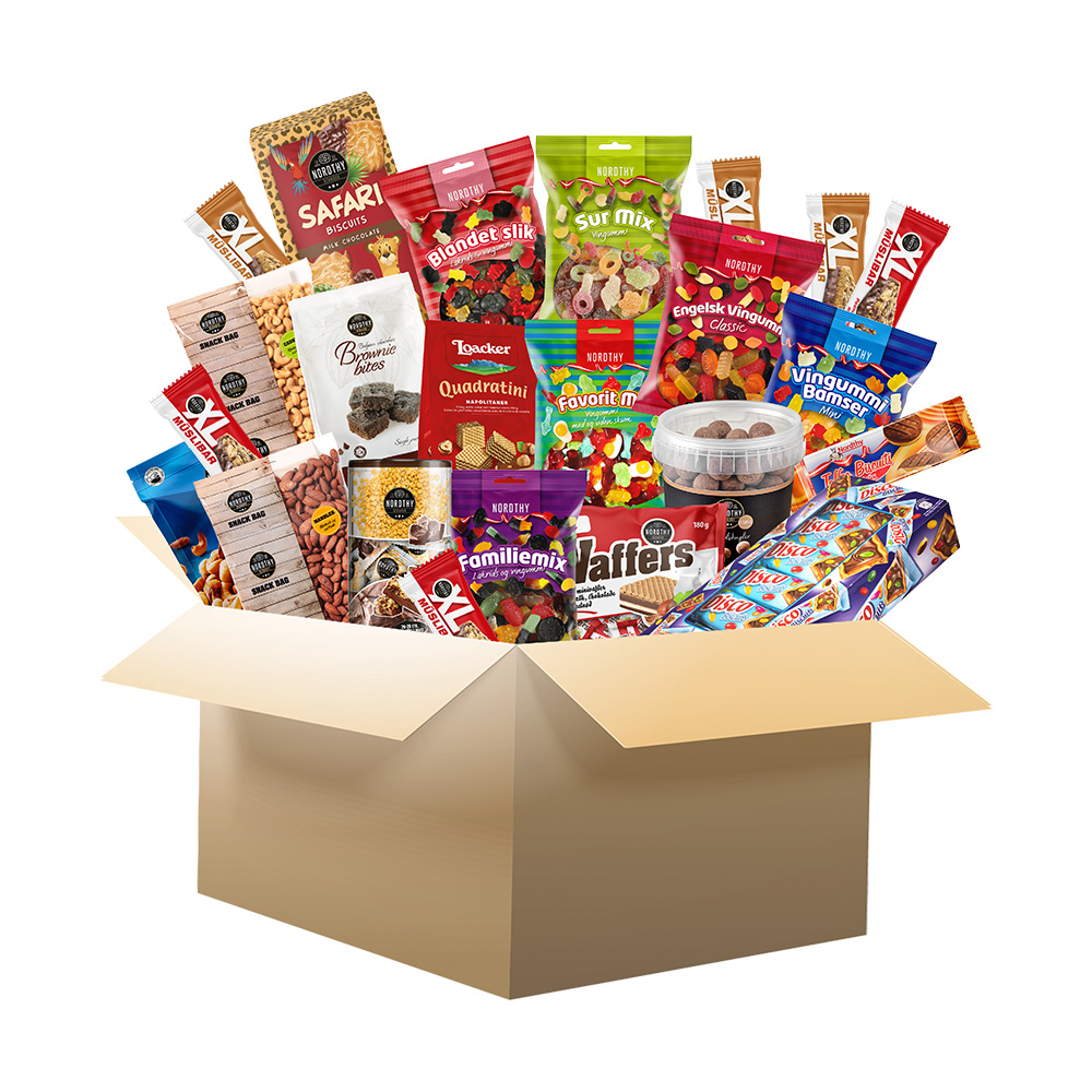 Familiekassen er en blanding af udvalgte produkter, perfekt til at dele med hele familien, hvor der er sikret noget for enhver smag!.